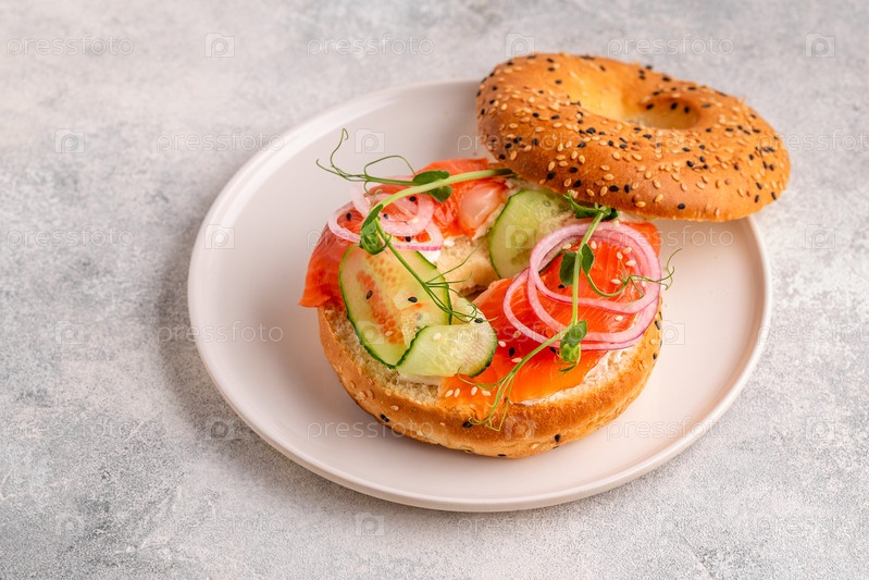 Бублик и лосось лох со сливочным сыром