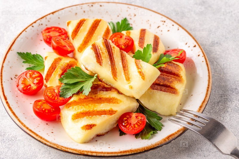 Жареный сыр халлуми с помидорами и петрушкой