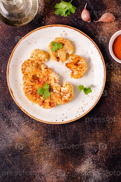Стейк из цветной капусты со специями, приготовленный в духовке, вид сверху