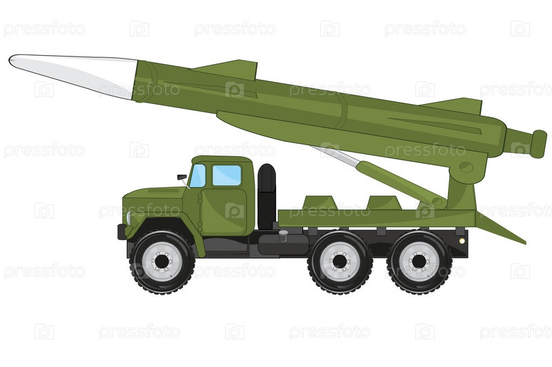 Специальный военный автомобиль с ракетной установкой на корзине