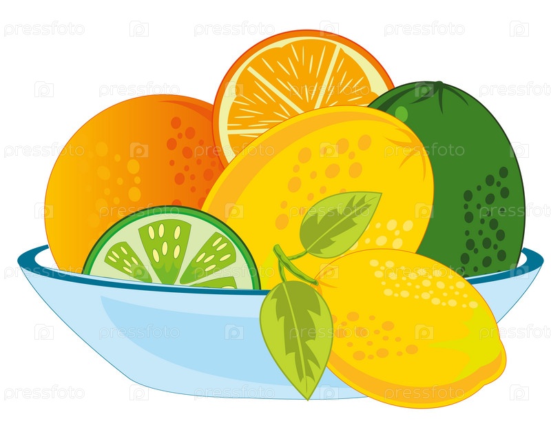 Векторная иллюстрация фруктовых цитрусовых на тарелке