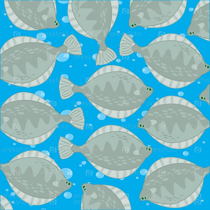 Орнамент рыбной камбалы на синем фоне