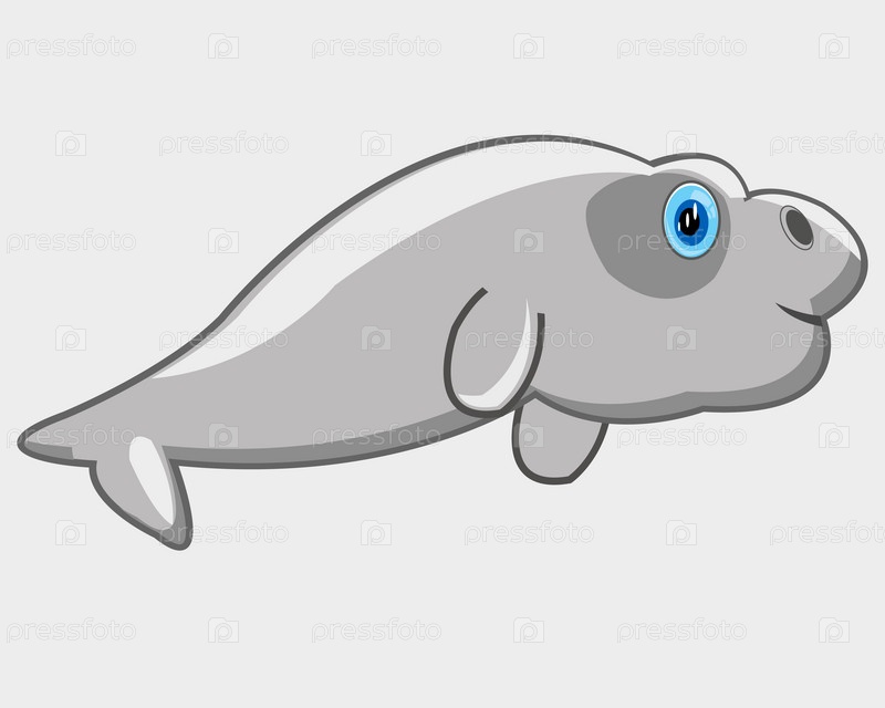 Векторная иллюстрация ребенка рисунок морского животного ламантин