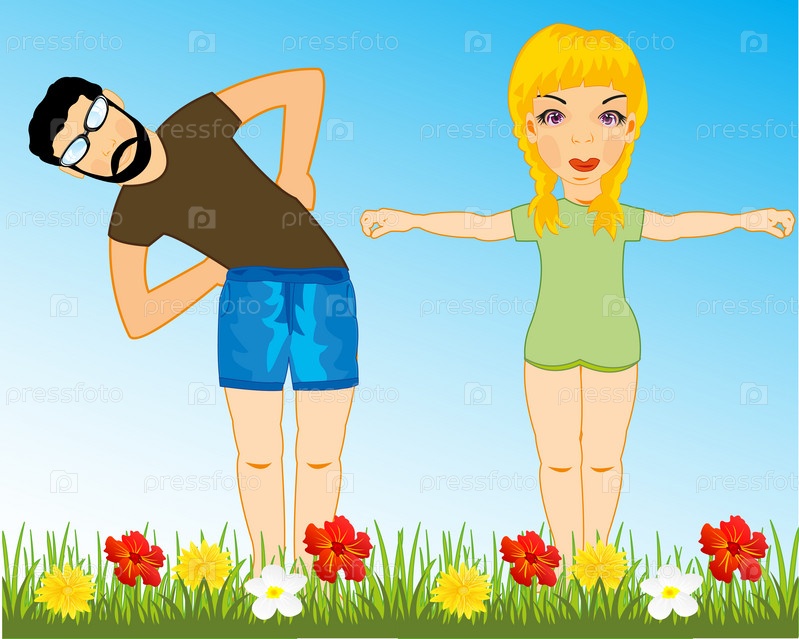Мужчина и девушка разминаются на природе