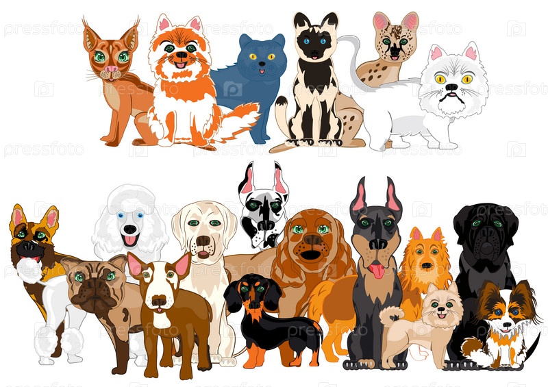 Ансамбль векторных иллюстраций сортирует кошек и собак