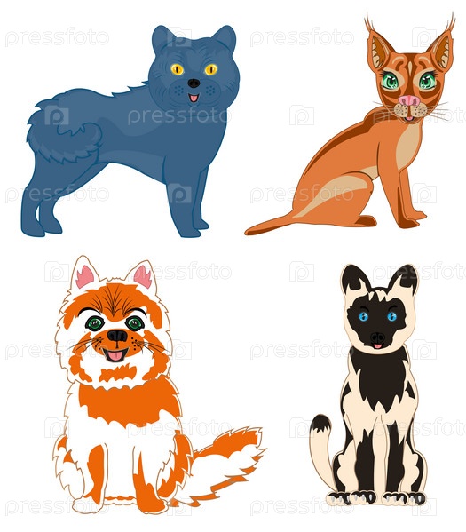 Векторная иллюстрация домашних животных кошек разных видов