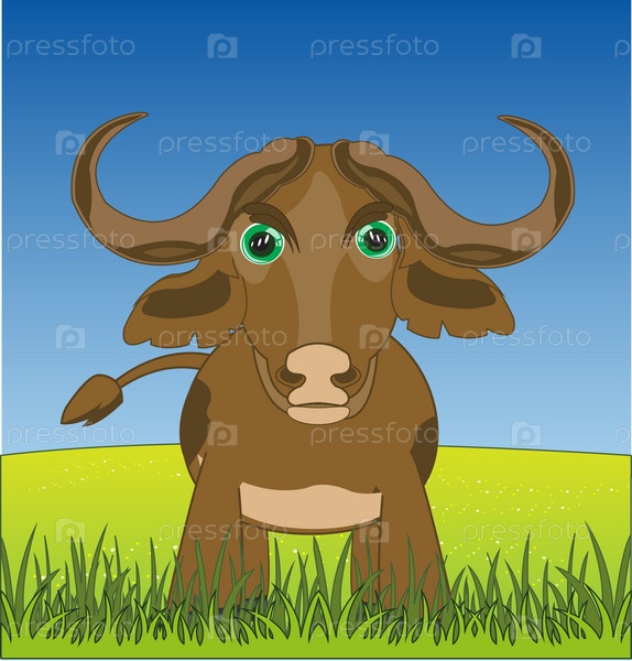 Копытный буйвол на зеленой поляне года
