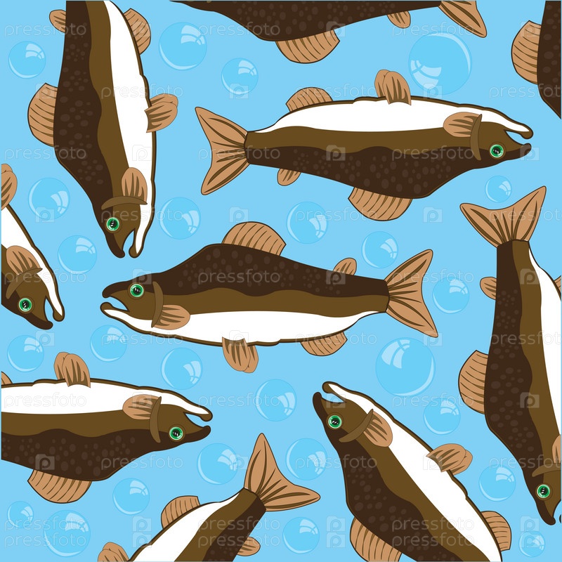 Векторная иллюстрация ценного лосося и пузырькового воздуха