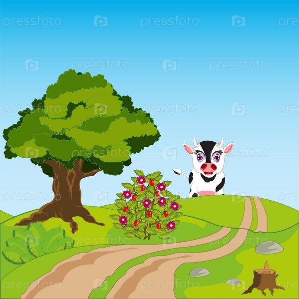 Годовой сельский пейзаж с дорогим и зеленым холмом