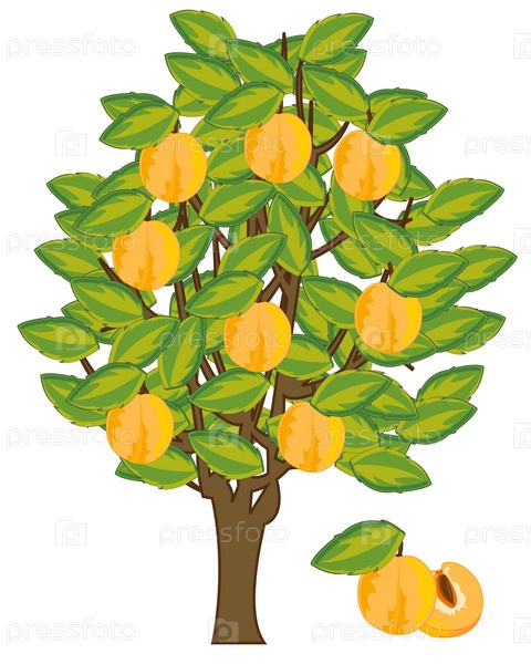 Векторное иллюстративное дерево с фруктовыми желтыми спелыми выделениями