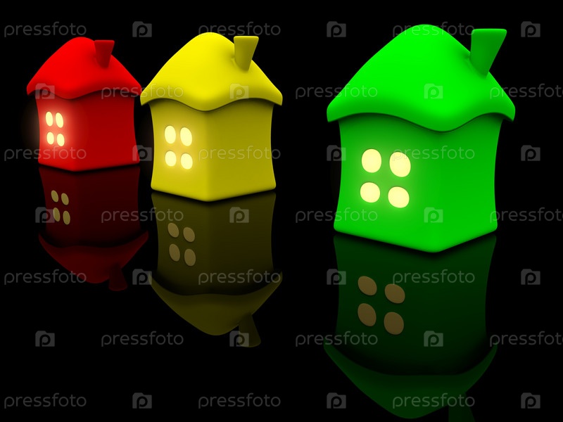 Три трехмерных домика