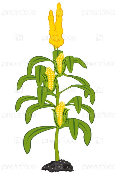 Векторная иллюстрация куста со спелой кукурузой