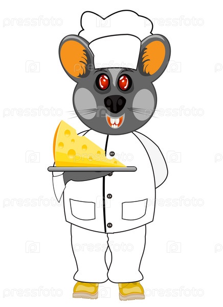 Векторная иллюстрация мышиный повар с сыром на белом фоне