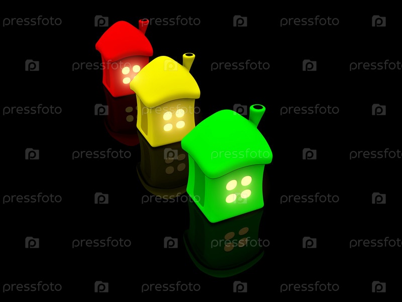Три трехмерных домика