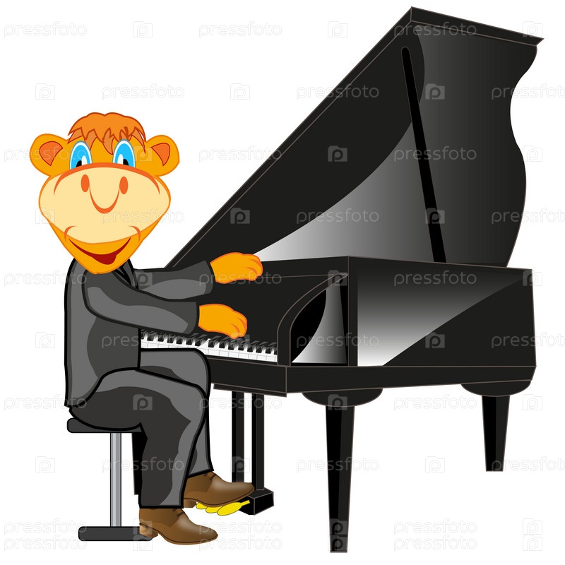 Мультяшное животное играет на музыкальном инструменте фортепиано