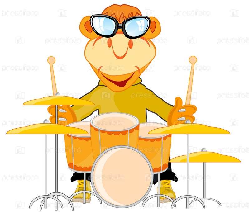 Мультяшный музыкант-животный для ударных инструментов. Векторная иллюстрация