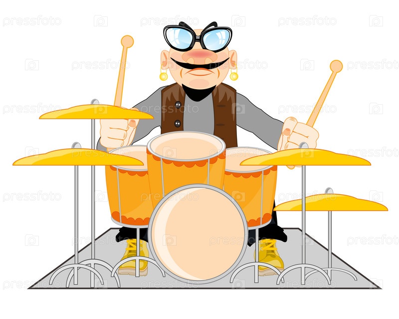 Модный барабанщик для музыкального инструмента. Векторная иллюстрация