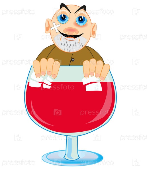 Мультяшные мужчины-алкоголики выглядывают из кубка вины