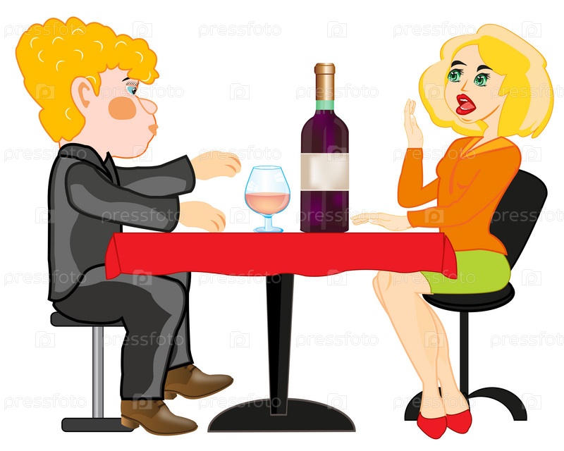 Девушка и парень за столом. Векторная иллюстрация