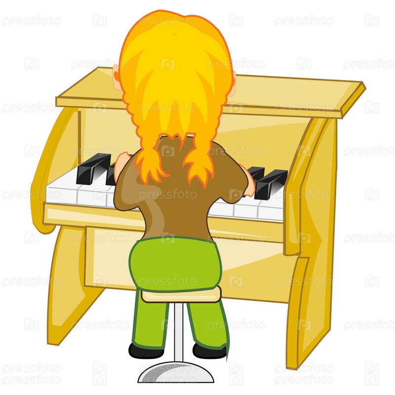 Девушка играет на музыкальном инструменте фортепиано. Тип позади
