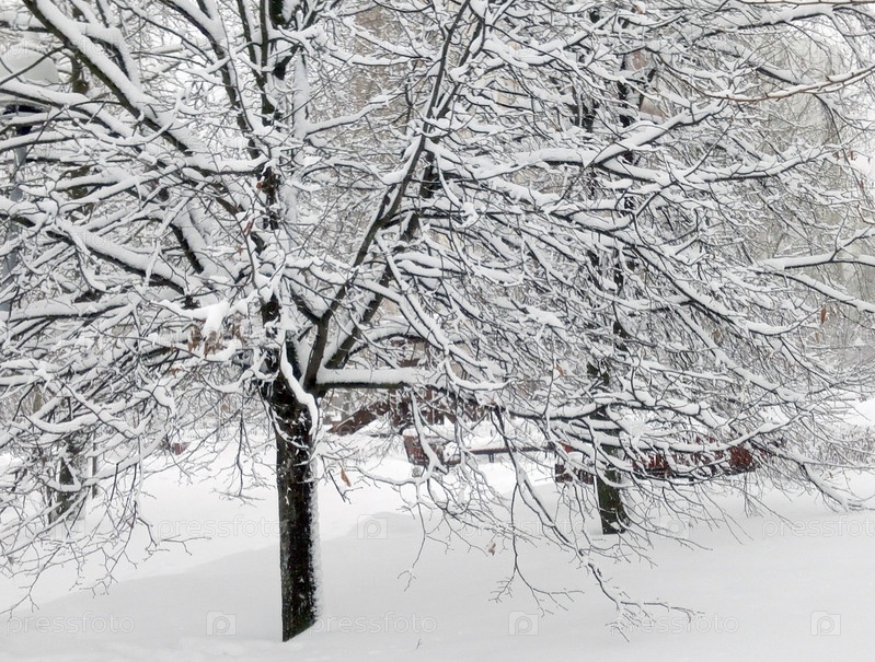 Городской парк после снегопада днем