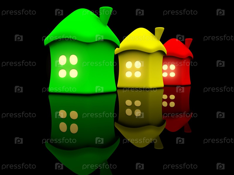 Три трехмерных домика
