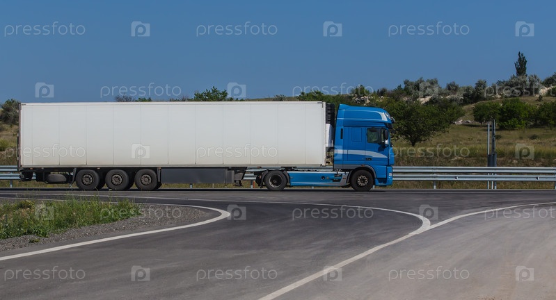 Полуприцеп грузовик движется по пригородной трассе