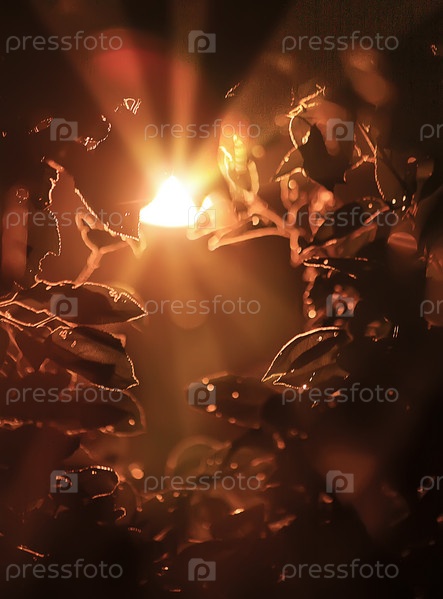 Свет лампы сквозь ветки деревьев