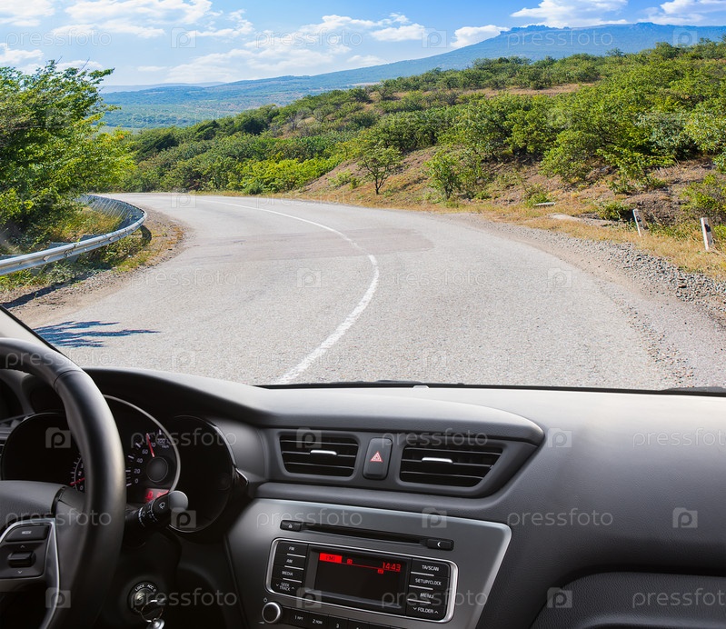 Машина едет по горной дороге