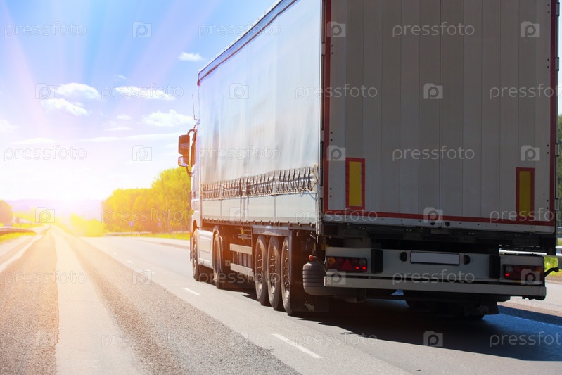 Грузовик едет по шоссе