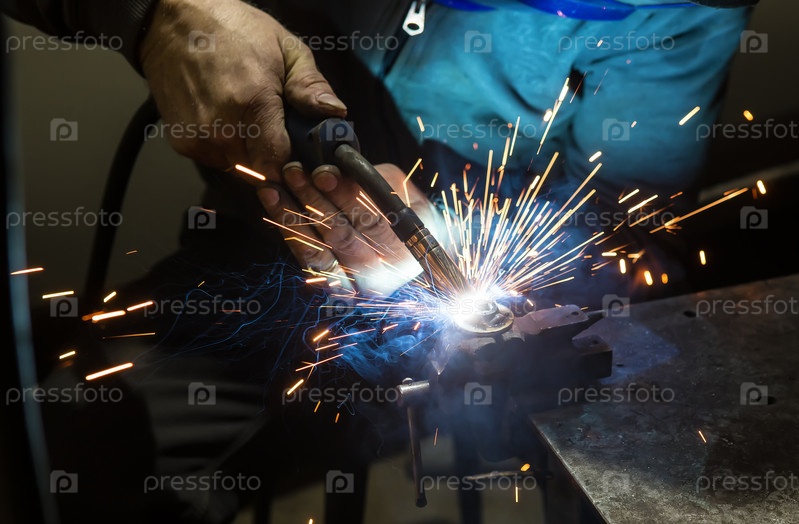 Сварщик сваривает металлические детали