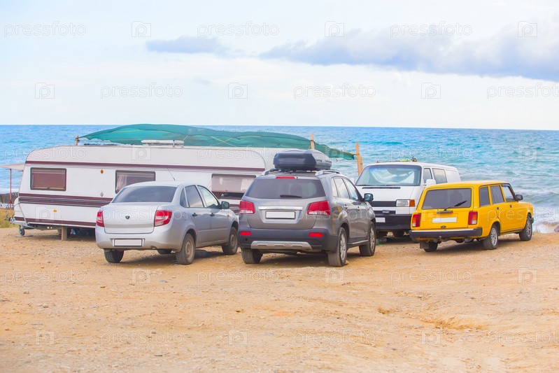 Автомобили и кемпер на берегу моря