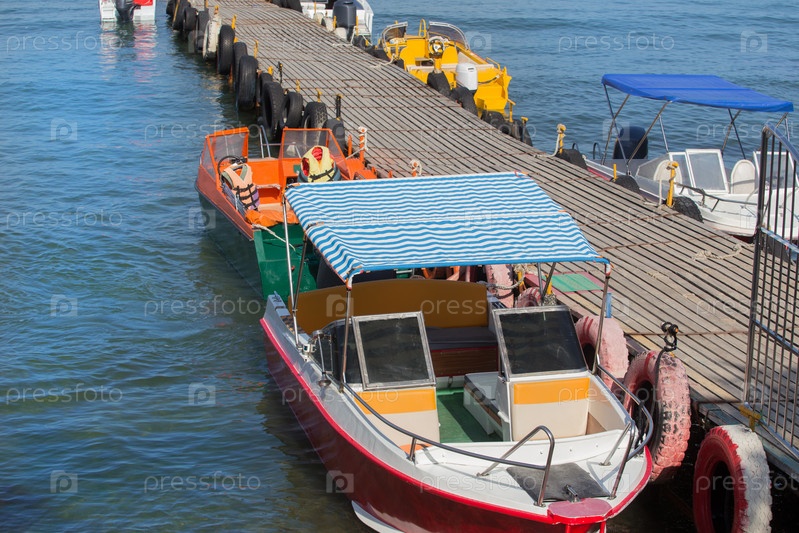 Моторные лодки для морских прогулок пришвартованные