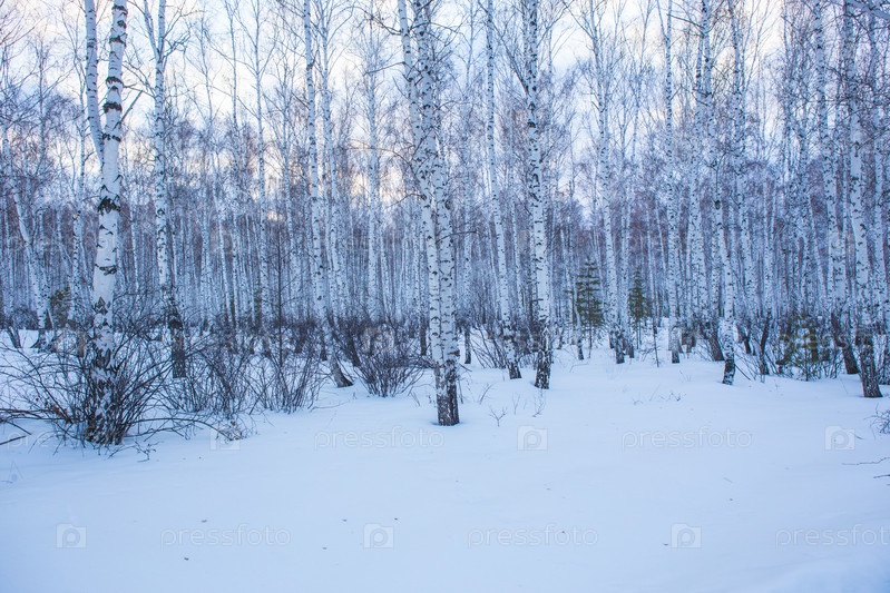 Пейзаж с зимним березовым лесом