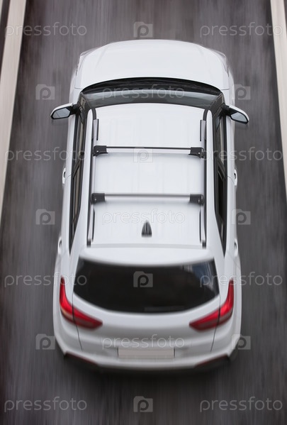 Автомобиль движется по многополосному шоссе вид сверху