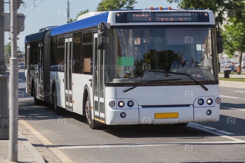 Городской автобус идет по улице