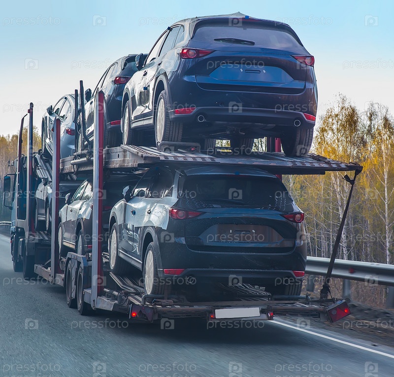 Автовоз на полуприцепе на шоссе