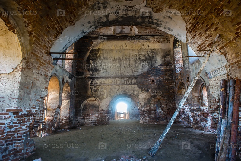 Интерьер старой разрушенной кирпичной церкви