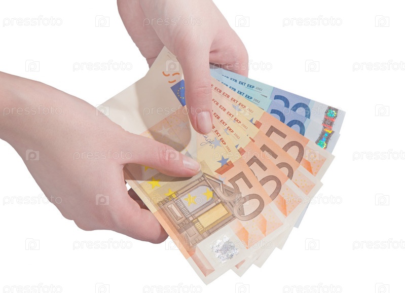 Банкнота евро в женских руках