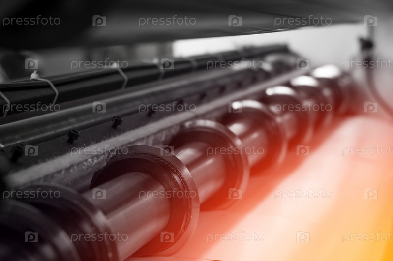 Круглые вращающиеся ножи для резки бумаги и намотки на отдельные валики из самоклеящегося материала для типографики. Машина для резки полиграфической бумаги. Оборудование бумажной промышленности. Выборочный фокус