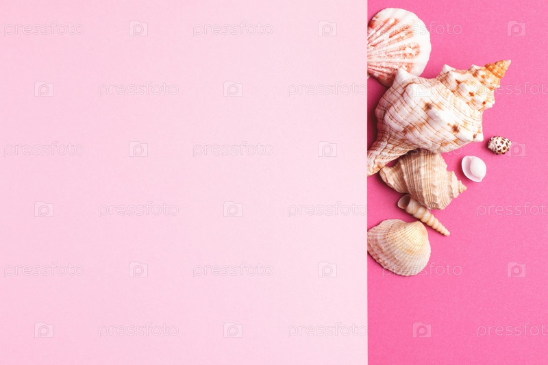 Презентация, основной розовый летний фон с натуральными морскими раковинами
