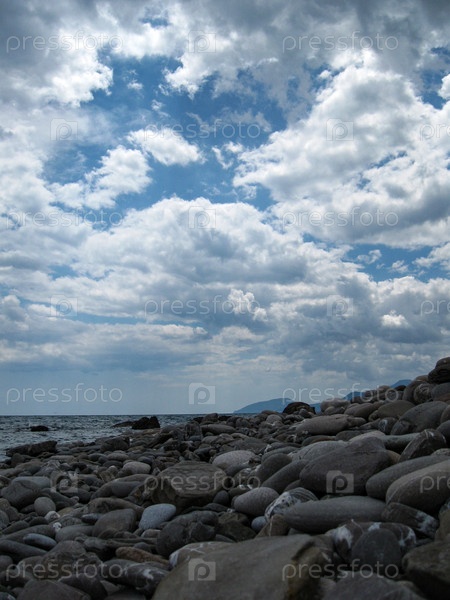 Каменистый пляж в пасмурную погоду