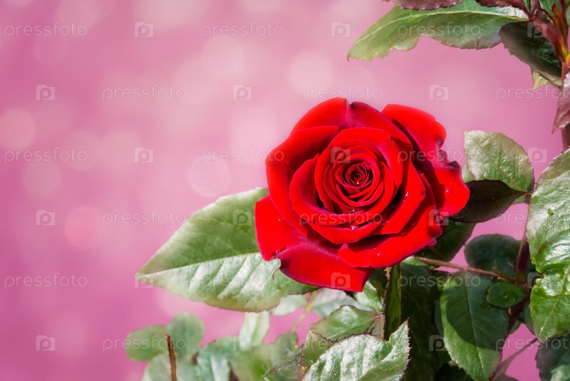 Красивая красная роза на фиолетовом фоне боке. Выборочный фокус