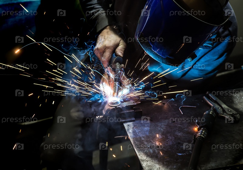 Сварщик сваривает металлические детали