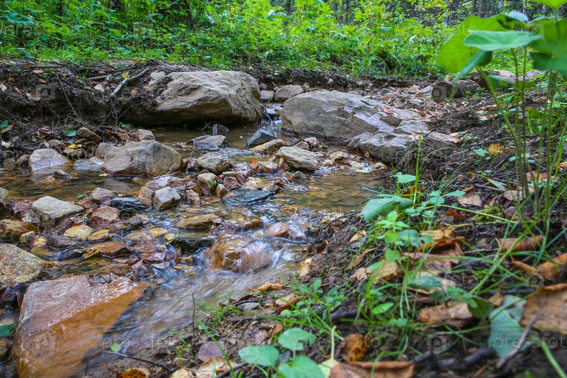 Ручей в зеленом лесу