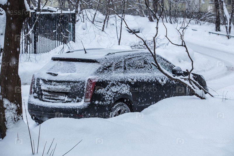 Автомобили в снегу, припаркованные зимой