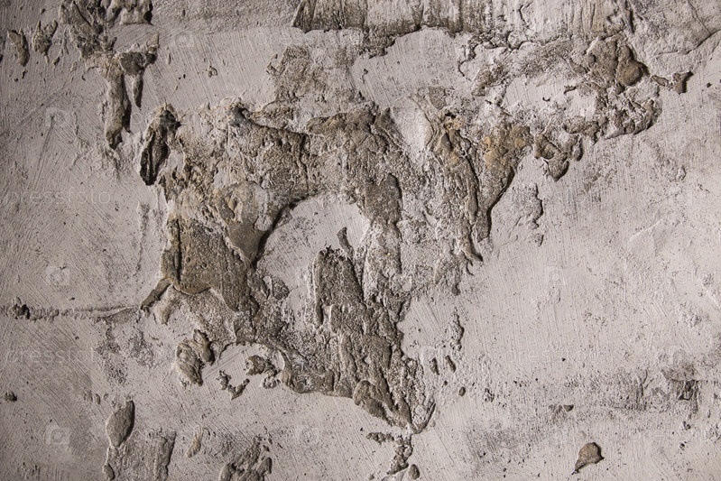 Треснутая грубая штукатурка на старой стене. Крупный план
