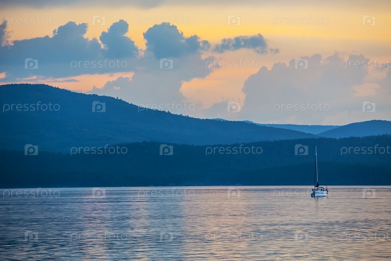 Яхта на озере вечером
