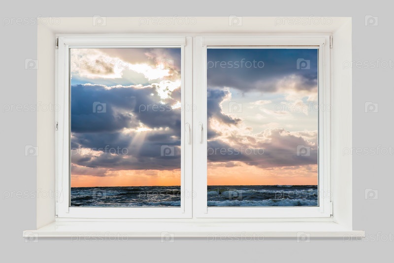 Вид из окна на закат над морем