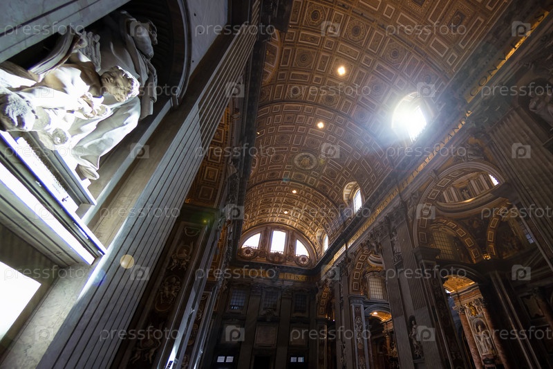 РИМ - 31 марта 2019 г.: Внутри собора Святого Петра или Сан-Пьетро в Ватикане, Рим, Италия. Панорама роскошного интерьера эпохи Возрождения. Святой Петр – одна из главных достопримечательностей Рима